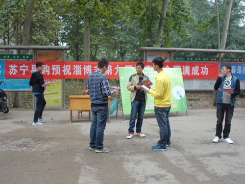 此次淄博市文学现场青春诗会活动筹备良久。在前期宣传活动过程中,负责人们借助条幅、展板等积极热情地向同学们介绍此次青春诗会活动内容及其注意事项,并将宣传单页分发下去,号召大家积极参与。通过他们的讲解,不少同学对青春诗会兴趣十足并踊跃报名。