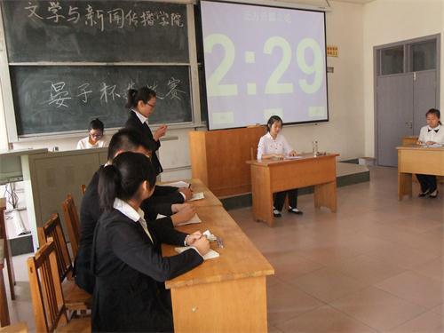 (本站讯)5月15日下午两点,第二十届“晏子杯”辩论赛文学与新闻传播学院选拔赛在一号教学楼204教室举行。第十九届“晏子杯”优秀辩手、第一届“心理杯”冠军、第十二届“管坛杯”亚军张世伟,第一届“儒林杯”最佳辩手王琳,优秀辩手韩超越、王梦迪、丁旸参加此次辩论赛并担任评委。