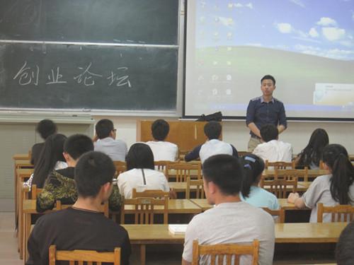 活动伊始,陈强老师就主讲人梁总的情况向同学们做了简单的介绍。随后,活动直奔主题,梁总以自身及周边同学的经历为例,对创业途径及创业过程进行了说明,其中,在交流过程中指出“创业一定不能偏离专业,应置身于自己熟悉的领域。”并以教育事业为例,告诉同学们如果做教育,就要做自己的专业学科。除此之外,他还教导同学们要掌握一定的营销策略和沟通技巧,如孕妇效应、礼尚往来等。演讲以其典型客观的事例和幽默诙谐的语言赢得一片掌声,把现场气氛推向了高潮。最后,梁总与同学们进行面对面的问题交流,活动在同学们的积极参与中走向尾声。