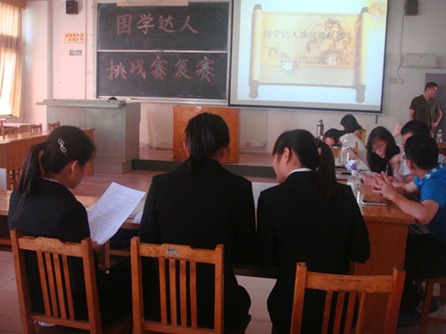 (本站讯)6月7日下午,国学达人挑战赛复赛在1号教学楼205教室举行。经过初赛的激烈角逐,成功晋级的代表队于今日下午进行16进8的复赛选拔,16队选手分四组依次参加比赛。
