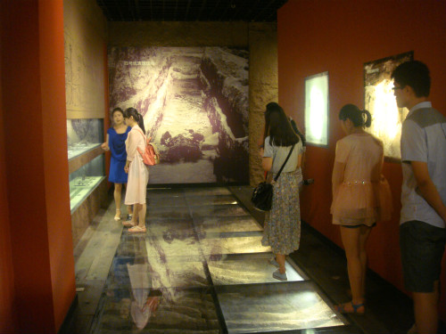 上午,实践团成员来到淄博市博物馆,在讲解员的带领下,成员们先后参观了《齐文化大展》和《馆藏文物博览》两个展厅,馆中精品云集,其中有许多国内外罕见的珍品:临淄齐国上层贵族墓出土的系列青铜器、金银器、玉器,西汉齐王墓出土的特大巨型铜镜、金尊铜戈、银盘、鎏金熏炉等,齐地文化丰富的物质遗产深深震撼了实践团的成员。