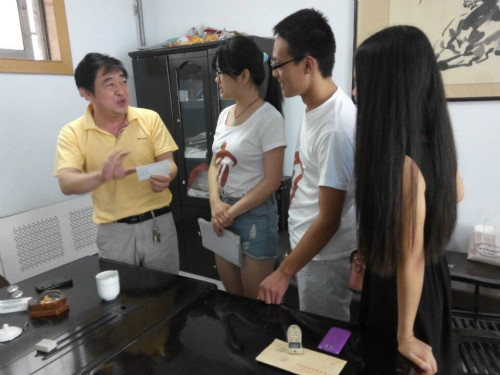 在访谈结束之际,毕金奎表示:“五音戏体现了齐文化在当代的新发展”、“淄博市要争创文化强市就需要做好一件件小事而最终累积起来”。语言句句朴实,发人深省。最后,实践团与毕老师合影留念,结束了此次剧院之旅。