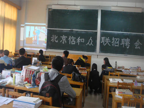 (本站讯)为使大四学子早一步踏上社会,体验生活。11月11日下午,雪花啤酒、东营清风培训公司、北京信和众联企业招聘会在2号教学楼210会议室、1号教学楼319教室和306教室顺利召开。