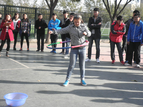活动开始前,参赛选手早早到达比赛场地,进行赛前热身。活动伊始,选手们斗志昂扬,积极热情的投入比赛。趣味篮球赛中,参赛选手投篮姿势多种多样,有下抛物式、跳跃式、上投式,选手们个个身怀绝技,投篮方式别出心裁,每当篮球钻入篮筐时,场上便爆发出阵阵欢呼声。背投毽子比赛中,选手们两人一组,一个队员转5圈后在规定线外背投毽子,另一个队员抱筐接毽子,着实考验队员之间的默契程度和协作能力,观众在参赛队员成功完成时给予鼓励,在失误时加油提醒。体育场上,欢笑声、鼓掌声、喝彩声此起彼伏。