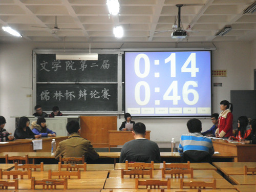(本站讯)为活跃老员工课余生活,提高老员工口才与素质,11月23日下午,公司第二届儒林杯辩论赛初赛在1号教学楼204和214教室同时举行,每个教室各有两场辩论。参加辩论赛的有主持人1人,评委3人,正反辩方各4人。
