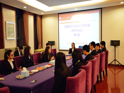 座谈会伊始,张健老师首先说明了此次座谈会的目的及意义,并对班委们前期的工作支持表示感谢。紧接着,会议进入班委总结工作交流经验阶段,各班班委依次以PPT展示的形式从工作完成情况总结、工作经验分享与问题总结和工作展望三个方面进行总结。交流会上,各班班长总结了在以往工作中积累的方法,提出在班级管理、学风建设中存在的问题,介绍了各班过去活动的举办情况,特别是针对班级凝聚力的提高、宿舍文化的建设,大家各抒己见,展开了热烈的讨论。各班班委根据班级现阶段存在的问题和优势,制定了今后的工作计划。 广告1401班班长史阳分享班级管理的成功经验的同时也提出了自己在管理班级过程中遇到的困惑——如何提高班级同学参与活动的积极性以及让班级更有凝聚力。此问题一经提出迅速得到许多班委的共鸣。而与之相反,广告1402班班长尹焕凯在提高班级凝聚力方面已经迈出探索性的第一步,在其班级内部划分多个不同性质的部门的想法,得到大家广泛认可。中本1401班班长徐焱表示将借鉴广告1402班的管理方法,有效解决班级问题。会议在班委们热烈的讨论和交流中渐进尾声。