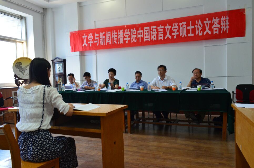 参加此次论文答辩员工及学位论文分别为:翟金芝《新历史主义视角下的<<>温故一九四二>》、吴恬恬《大众传播学视阙下的微博文化研究 》、郗彦晶《中国高密非遗文献扑灰年画美学研究》、苏运蕾《孙葆田研究》、韩艳英《<<>现代汉语词典>(第6版)同义词释义研究》。各位答辩员工依次按照抽签顺序进行答辩,首先各员工就论文选题意义、创新价值及论文不足之处进行系统阐述,其后答辩委员会老师就论文中存在的优点及缺点一一发问,并为同学提出建设性的修改意见,各答辩员工针对老师的提问展开陈述。经过紧张有序的答辩环节后,答辩委员会成员就各答辩员工的学位论文及答辩环节的表现进行投票,决定是否授予硕士学位。