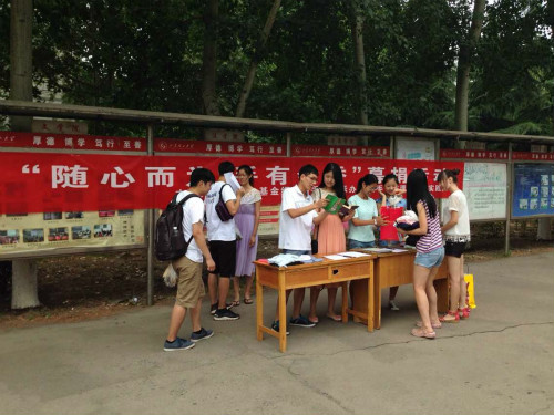 许多同学在得知募捐活动后,纷纷前往募捐点献上了自己的一份心意。一时间,爱的暖流汇聚于募捐地点。在募捐现场,有不少来自2011级的毕业生同学不辞辛苦,将重量不小的衣物从自己的宿舍搬到募捐地点。虽然累得汗流浃背,却十分高兴能为山区的孩子送去一点温暖。一件件爱心捐赠,承载了同学们对贫困孩子的关爱。活动过程中,实践团全体成员积极号召同学们播撒爱心,对捐赠者提出的问题进行了详尽细致的解答:向同学说明募捐衣物的用处,争取更多同学的理解与支持,接收捐赠者的衣物,并对捐赠者的信息进行了详细登记等等,暑期社会实践团全体成员都有条不紊的忙碌着。
