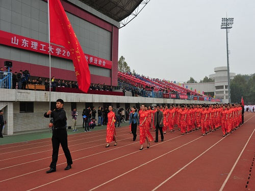 (本站讯)十月天高云淡,金秋风景如画。10月22日上午,第二体育场彩旗招展,锣鼓喧天。bevictor1946韦德官网2015年秋季运动会隆重开幕。公司国旗队铿锵有力、整齐有力的步伐拉开了运动会入场式的帷幕。紧随其后的各公司方阵尽显特色,各有千秋。公司方阵队迈着坚定的步伐,显示了文院学子独特的风韵特色和良好的精神风貌。