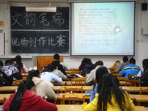 (本站讯)10月29日晚,西校区1号教学楼205教室,蒲公英文学社的“文韵笔端”现场创作比赛拉开序幕。