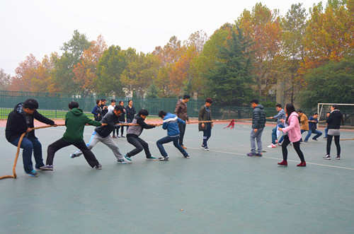 此次宿舍文化节户外比赛共分两项:同心力量大-拔河比赛,背投毽子比赛。背投毽子比赛不仅考验参赛选手们的平衡感和方向感,更考验搭档相互间的默契程度。参赛选手两人一组,一人在前方原地转五圈后背对向后投毽子,搭档则手持纸篓在三米线外接毽子。一只只白色羽毛毽在空中划过道道弧线,稳稳落于纸篓内,赢得观众阵阵叫好。东校区8号宿舍楼的622、507、625宿舍以及西校区一号宿舍楼413、515宿舍凭借出色发挥获一等奖;同心力量大-拔河比赛则更加激动人心,随着裁判一声哨响,所有参赛队员卯足了劲,重心下蹲,咬紧牙关,身体后仰,拼尽力气向后拉。最终,男生组二号宿舍楼343宿舍、女生组一号宿舍楼441宿舍夺冠。