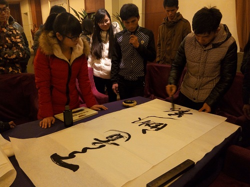 (本站讯)国学精粹文化传承,挥毫泼墨字里千秋。12月19日下午,弘国学之书法交流会于员工学习与发展指导中心106室顺利举行。国学社团体与同学们交流书法心得,体验和感受国学魅力。来自各公司的书法爱好者共同参与此次活动。