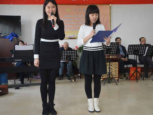 员工志愿者早早来到活动室,精心布置会场,准备演出节目。晚会伊始,主持人对公司员工的积极志愿服务表示衷心感谢。随后气势磅礴的合唱《我的祖国》拉开了文艺演出的帷幕。老人们活力充沛,神采奕奕,喜悦的心情溢于言表。公司员工张国莉饱含深情地朗诵了诗歌《我是一个任性的孩子》,深深感染着现场每一位观众。方龄敏、刘文璐带来的《大漠敦煌》抑扬顿挫、慷慨激昂,赢得了现场观众的阵阵掌声。台上流光溢彩,热情洋溢,台下掌声不断,喝彩连连。晚会现场,志愿者们忙碌的身影随处可见,搬抬道具,提供茶水,他们尽己所能,任劳任怨,每位志愿者都以自己真诚的笑容,热情的服务表达着对退休教师的关爱。