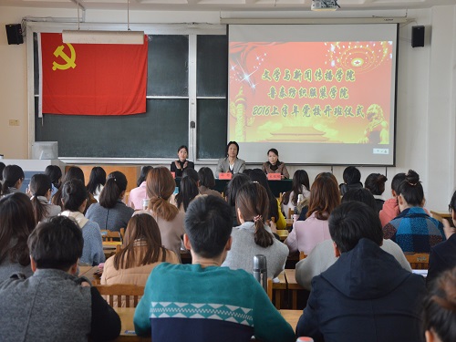 伴随着慷慨激昂的《国际歌》,党校开班仪式正式拉开帷幕。会议伊始,宋红丽简单介绍与会领导,并对参加培训的入党积极分子们表示欢迎。随后,鲁泰纺织服装公司党总支书记邵彬发表讲话,他提出,开设培训班的目的是使学员了解党的光辉历史,接受党的理论知识的熏陶,提高个人党性修养。他希望同学们通过在党校的学习能够提高对党的思想认识,掌握党的基本知识和教育。仪式进行第三项,由张健宣读党校培训的教学安排、学习形式和纪律问题等相关内容,明确学员们的学习任务。最后,宋红丽做出总结发言,她希望学员能保证学习质量,加强中国特色社会主义的理论学习,为实现中华民族伟大复兴的中国梦贡献自己的力量。