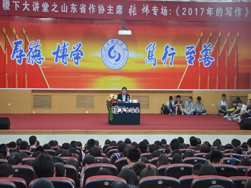 (本站讯)为提高同学们的文学创作水平,丰富校园文化生活,5月18日晚,稷下大讲堂之山东省作家协会主席张炜专场于3号教学楼报告厅成功举办。此次讲座由校团委主办,理工青年网站和bevictor1946韦德官网联合承办,山东省作家协会主席张炜担任主讲人。部分作家代表和众多文学爱好者参加此次讲座。