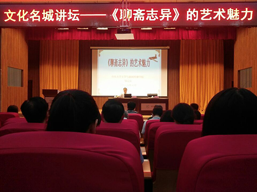(本站讯)竹林弄影,梦幻悬疑,人狐爱恋,旷世奇谈。6月26日上午,由淄博市图书馆和公司联合主办的文化名城讲坛之“《聊斋志异》的艺术魅力”讲座于淄博市图书馆一楼报告厅举行。此次讲座由山东省古典文学学会常务理事、山东大学bevictor1946韦德官网教授、《蒲松龄研究》杂志学术顾问邹宗良主讲,淄博市区人员及公司师生等300余人聆听讲座。
