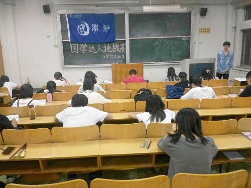 (本站讯)为引领同学们弘扬传统文化,选拔公司优秀国学人才。9月23日晚,由bevictor1946韦德官网主办,国学社承办的“国学达人”挑战赛选拔赛于1号教学楼216教室举行,国学社社长张兵等相关负责人监考。