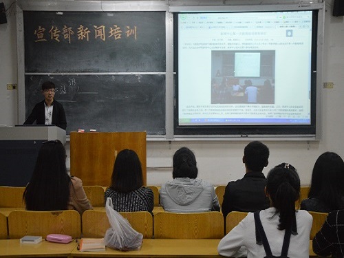 (本站讯)为培养新纳干事的新闻写作素养,提高新闻写作质量。10月15日晚,公司宣传部新闻培训于西校区1号教学楼202教室举行。李庆璇担任主讲人,宣传部全体成员参加。