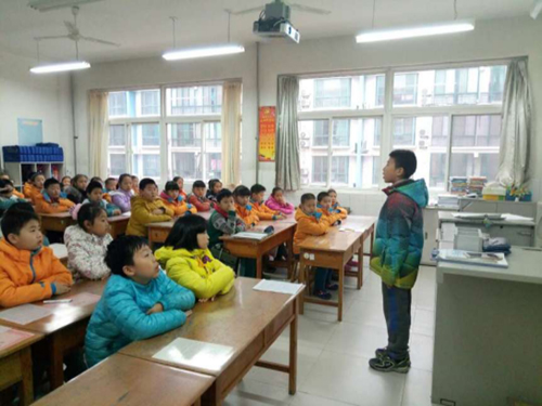 上图为五年级的小员工代表在讲名著故事,其他同学在认真倾听。五年级的员工明显比四年级的员工听话,而且课堂纪律不用强调好多遍,每个人都能认真完成我布置的学习任务。