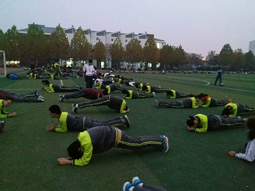 员工们对于新来的实习老师充满了好奇与新鲜感,班主任说正因为这样,无论员工们做什么只要有我在,他们都会表现的很好。初四员工跑操之后还要做体能训练,为了中考的体育成绩,员工们不得不训练。当我发现有些员工在偷懒的时候,便说了一句“你们不认真的样子真丑!”大家又继续咬牙坚持。我顿时倍感欣慰。图为员工体能训练时的场景。