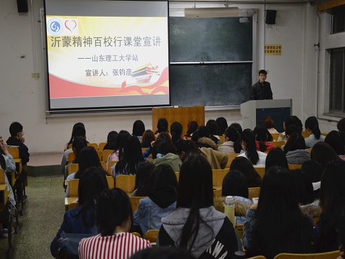 (本站讯)为弘扬沂蒙精神,推进志愿服务活动顺利进行,3月14日晚,沂蒙精神百校行课堂宣讲会在公司1号教学楼216教室举行,中教1601班张钧彦主持此次会议。汉语言文学专业与广告专业2016级全体员工参加。