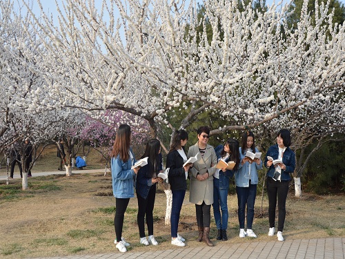 品读经典,对话圣贤。活动伊始,张玉霞携中教1602班全体成员在连心湖畔与游人随机诵读经典,拍照纪念。随后,在张振美、万美刚的带领下,班级全体成员有序前往老员工艺术中心广场举行班级诵读活动。此次诵读活动以现代诗歌朗读为主,活动以小组的形式开展,共分为厚德、博学、笃行、至善四个组。其中,侯明妲、李沙沙带来的诗朗诵《你是人间四月天》将中国诗歌传统中的音乐感、绘画感完美结合;薛文敏、王静带来的《一颗开花的树》将爱的赞颂表达的淋漓尽致,小组成员在声情并茂的朗读中充分展现出诗歌的魅力,活动气氛积极欢愉。班级导师张玉霞即兴朗诵的《江南雨》像春雨一般滋润心田。而后,张玉霞说:“我们应该怀着一颗感恩的心品味诗歌,在朗读中展现心灵内心深处的情感,借诗歌浸润我们的心灵。”最后大家集体朗读《春》,迎接春的到来。此次活动在热烈的掌声中结束。