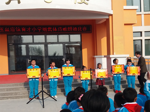 4月12日,育才小学举办以“爱国、爱校、爱家”为主题的班集体诗歌朗诵比赛,支教队员刘亚楠作为组委会成员并担任主持工作,最终,刘亚楠所指导的四年级二班获得中年级组特等奖,任亚萍所指导的二年级二班获得低年级组优秀奖,宫稚文所指导的五年级二班获得高年级组优秀奖的好成绩。