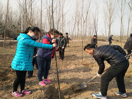 3月2日,支教队员刘亚楠、任亚萍随育才小学部分教师来到镇上进行植树活动,为生态商河增添了一抹绿色。