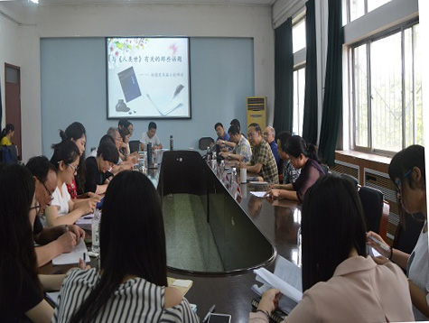 (本站讯)心的交流,新的火花。为进一步加强同学们与作家的交流,更加了解作者与作品,开拓员工视野,提高文学修养。6月16日下午,山东省作协副主席、日照市文联主席、著名作家赵德发与文公司师生们就长篇小说《人类世》于西校区二号教学楼210室举行研讨会。公司教师王晓梦副教授、唐长华副教授,淄博市作家代表郝炜华,公司研究生代表以及部分区县作家代表一同参加了研讨会,李晓伟博士主持会议。