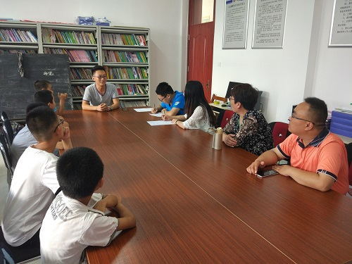 “张玉霞讲坛实践团”从6月底着手准备此次社会实践前期事项。实践团指导老师张玉霞亲力亲为,组队之后,指导团队制定实际可行的策划方案。7月9日,实践团前往淄博市博山区城东街道办事处联系接收单位,并与办事处相关工作人员协商此次社会实践的事宜。为使社会实践顺利进行,实践团多次组织前期筹划会议。在会上,往年有经验的员工与团队成员交流,队长介绍社会实践的行程安排与实践目的,实践团通过团队讨论,结合个人特长,明确各个队员负责任务。此外,队员们就实践中可能出现的各种问题进行讨论,提出修正意见,最终形成完备的实践方案。