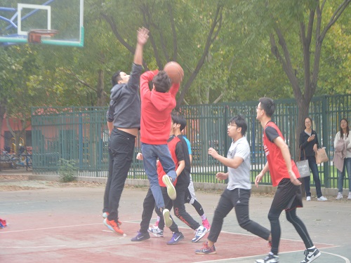 比赛伊始,大一代表队和大四代表队首先激烈地拉开了帷幕,大一新生们意气风发,热情饱满,充满斗志,给场上制造了紧张刺激的气氛。但大四代表队配合默契、出色,回防迅速,动作帅气利落,拿下多球,比分渐渐拉开差距,最终大四代表队以53分的高分取得了上半场的胜利。虽然大一新生们暂时落后,但“长风破浪会有时”,在下半场比赛时,新生们愈挫愈勇、迎难而上,积极进攻,严密防守。大四代表队历经三年磨练,依旧戒骄戒躁、虚怀若谷,精彩的配合,巧妙的抢断,以15分的差距战胜大一代表队。而大二和大三代表队的比赛更加精彩绝伦。大三代表队绝妙的抄截,妙传,盖帽,跳投,跨下运球,远距投篮,给同学们带来了一场丰富的视觉盛宴。大二代表队也不甘示弱,他们上下一心,通力合作,帅气利落的接连进球,使比分僵持不下。赛场下的观众为他们呐喊助威,为队员们精彩的表现拍手叫好。下半场比赛进入白热化阶段,他们你追我赶,投出多个三分球,但大三代表队在最后时机严守硬对,激烈争夺,通过裁判“公平、公正、公开”的判断和计算,大三代表队以37比25的成绩取得比赛胜利。