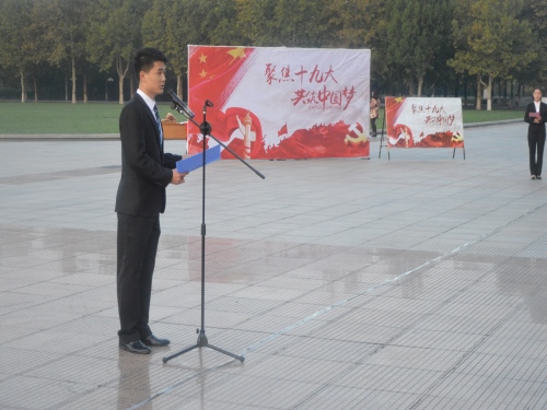 (本站讯)为响应并落实“十九大”精神,进一步增强广大党员和团员青年的爱国意识,引导青年员工自觉践行社会主义核心价值观。10月23日早,公司“聚焦十九大,文苑践五有”主题实践活动于鸿远楼广场举行升旗仪式。公司党总支副书记孙钦泉及300余名师生代表参加仪式。