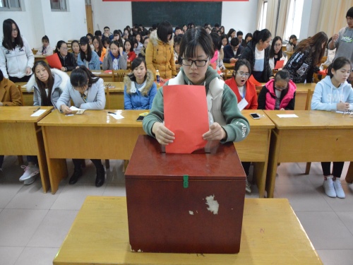 投票活动伊始,主持人介绍活动流程,校员工会评选监察委员会成员说明活动注意事项,并在各教室黑板上注明举报电话、邮箱,以确保活动的公平、公开、公正。随后,工作人员向员工代表发放教师评选资料,宣讲人通过ppt分别介绍各位候选老师的基本信息,主要包括个人简介、教学特色以及员工评价,使员工代表对各位评选老师有初步的了解。紧接着,现场工作人员引导员工秉承着“公平、公正、公开、民主”的原则对自己最喜欢的老师投票,同学们认真填写,谨慎使用投票权。投票完毕后,伴随着激昂的背景音乐,员工代表在工作人员的监督下有序地将自己的投票结果放入票箱中,工作人员在员工代表及监察委员会的见证下现场唱票。评选过程严谨有序,符合评选要求和标准。