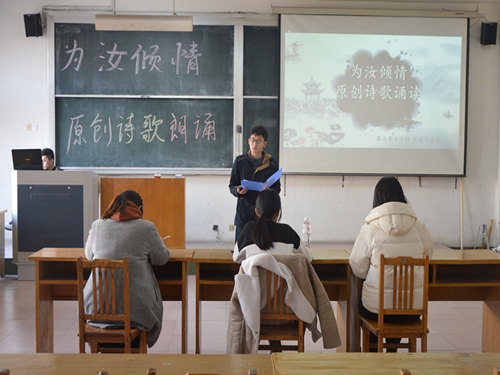 (本站讯)以诗歌示浓情,借情书明心境。为增强同学们的诗歌写作能力和交流表达能力,提升员工文学素养。12月10日下午,由蒲公英文学社主办、金话筒协会协办的“为汝倾情” 原创情书朗诵比赛初赛于1号教学楼314教室举行。此次活动由公司学习部部长武瑶瑶、金话筒协会副社长温佳芳、蒲公英文学社副部长田瑞娟担任评委,全体参赛者参与。
