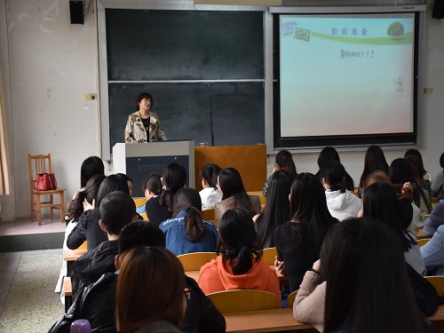 (本站讯)4月12日下午,公司2015级员工实习动员会于1号教学楼202教室顺利举行。此次讲座由淄博市教学能手、教书育人先进个人、西六路小学董事长、多次担任张店区新晋教师上课评委的刘玉芝担任主讲人,2015级汉语言文学(师范类和非师范类)专业员工积极参加。
