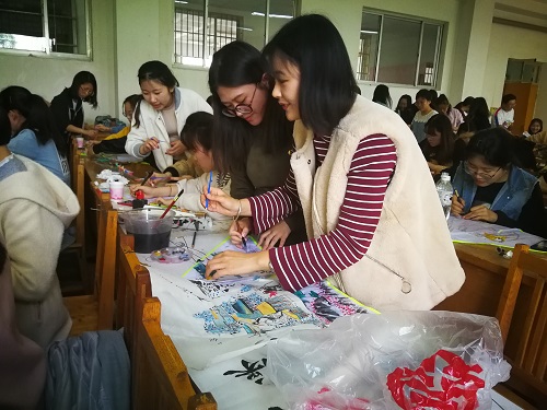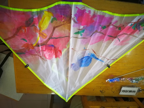 此次比赛集书法和绘画于一体,要求选手以“春”为主题创作,选手必须组队参加,不得单人参赛。创作完成后,由国学社成员组成的评审团打分,之后带到室外放飞,放飞成功的额外加一分。比赛开始后,选手们便积极投入创作,有调色的,有绘画的,有写书法的,各有分工,参赛选手有条不紊地进行着。缤纷多彩的画面不断在选手笔下呈现,跃然于纸鸢之上,与室外的春意盎然相映成趣。