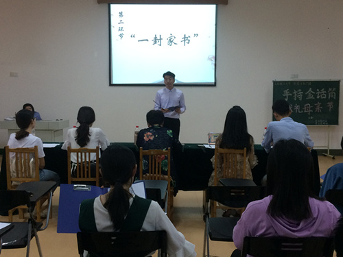 (本站讯)五月母爱恩义长,孝礼长诵赞华邦。5月24日下午,由公司金话筒协会与张玉霞讲坛联合主办的第二届“手持金话筒,献礼母亲节”朗诵大赛决赛在1号教学楼412教室举行。公司金话筒协会指导教师张玉霞、社团指导老师刘菲菲、前校员工会副主席方龄敏、电视台优秀主持人许文哲、老员工艺术团优秀主持人张宾佳、广播台优秀主持人许贞武担任此次活动评委。