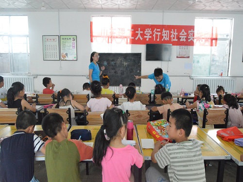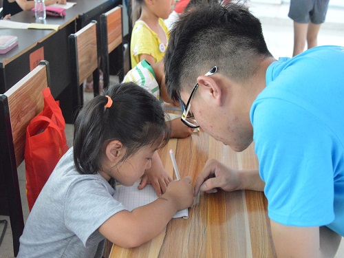 (本站讯)横竖撇捺扬文字,形体神韵一脉承。7月16日下午,“行知”社会实践团在淄博市淄川区太河镇东同古开展硬笔书法课程,由实践团成员赵薇清和郑保阳共同教授。
