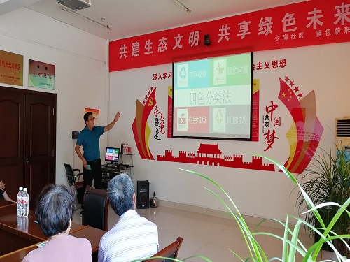 杨老师还向社区居民详细讲解了“蓝色蔚来”项目的流程以及意义,呼吁更多人参与进来,为垃圾分类和环境改善贡献出自己的一份绵薄之力;“垃圾分类,行动有我”,虽然个人的力量薄弱,但可以带动身边人参与到环保行列之中,从而渐渐影响整个社会公民群体共同参与环保。