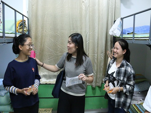 (本站讯)“万里此情同皎洁,一年今日最分明。”9月23日下午,公司在中秋节来临之际开展慰问新生系列活动。2018级辅导员张健在员工助理及部分新生的陪同下,走进新生宿舍,发放中秋礼品,将月饼亲送至每位同学手中,让大家感受到公司浓浓的温情和人文关怀。