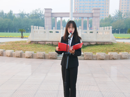 升旗仪式伊始,校员工会国旗班迈着标准整齐的步伐,口号响亮,刚劲挺拔地护送国旗进场,在庄严的国歌声中,全体师生心怀着对祖国的崇敬热爱和对党的忠诚追求向冉冉升起的五星红旗行注目礼。随后,青年员工代表盖奕洁做了以“不忘初心跟党走,牢记使命献青春”为主题的国旗下演讲。她从青年员工的角度出发,提到当代青年应在思想精神、能力素质、干事创业等方面积极承担责任和使命,鼓励同学们要把个人的前途同国家民族的命运紧紧联系在一起,坚定理想信念,积极努力学习,聚焦专业素质和综合能力的提升,立鸿鹄志,做奋斗者。并简要阐述公司为员工做的“就业明灯”计划、开设员工骨干训练营、开展文传学子秀板书活动等五件实事,充分展示出青年员工的社会责任感和历史使命感,也突出了公司致力于员工的全面发展工作。