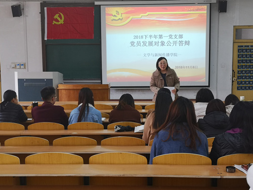 (本站讯)11月8日下午,2018年下半年党员发展对象公开答辩在2号教学楼227教室和1号教学楼321教室顺利进行。此次答辩由员工第一党支部书记刘菲菲、第二党支部书记田明月主持,员工党支部全体党员、党员发展对象、入党积极分子代表和组织员王建利老师参加会议。