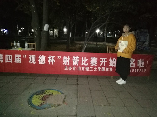 参与本次宣传的人员有部长张冉,孔炎炎,孙世豪等;副部高婧,孙睿琳,刘芳等;干事李绪成,任园,丛湘成等。在宣传过程中,工作人员们采取了横挂条幅,分发宣传单的方式对比赛进行宣传。工作人员在宣传时热情细心,他们向同学们介绍了射艺的知识,以及比赛的相关内容,并积极鼓励同学们参赛。此次比赛为室外实践射箭,同学们将会亲身体验射艺的魅力,感受传统文化的精彩。同学们在了解了比赛之后,大多踊跃报名,报名人数与日俱增。