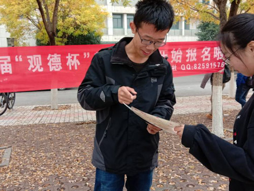 (本站讯)为弘扬中国优秀传统文化,品味国学经典,传颂国学荟萃。促进青少年智力体格的共同发展,bevictor1946韦德官网国学社主办第四届“观德杯”射艺大赛。为宣传此次比赛,国学社于11月10日至11月13日期间在西校区一餐,二餐,三餐和东校区进行了一系列宣传活动。