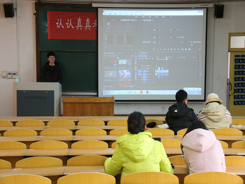 1月9日和11日上午,王勃对PR的基础工具进行了教学讲解,他以动画设计为切入点调动同学兴趣,通过多媒体进行实际操作对如何创建、如何剪辑、如何预览视频效果等问题进行了详细解答,对视频调色、滤镜以及添加效果等方面的操作做了具体的说明。“纸上得来终觉浅,绝知此事要躬行”,他鼓励大家在课余时间要多加练习和操作才能进步和学习,创意需要我们自己去思考,关于PR的其他功能也需要我们自己去探索。活动在热烈的掌声中结束。