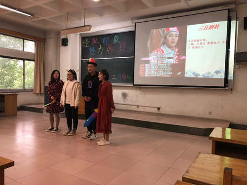 (本站讯)4月27日,公司三月剧社在1号教学楼321教室举行了“经典印象,魅力再现”活动。公司社团服务中心主任岳敏,三月剧社社长李瑾、表演部部长戴玥、编导部部长周炫欣、活动部部长陈旭华以及各个参赛小组参加此次活动。