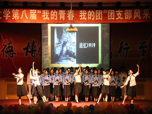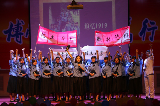 比赛伊始,出场的各代表队大显身手,或满怀激情,或青春阳光,竞争十分激烈。而后,公司代表队上场。中教1802团支部成员身着富有特色、整洁大方的民国风服装,整齐有序地站上舞台。台下,公司同学们高举“文苑出征,一揽芳华”的条幅,大声齐喊口号为他们加油助威,团结向上的文苑风范也深深地感染着现场的每一个人。中教1802班团支书王海睿身着干练正装,简明扼要,流畅熟练地进行答辩,获得评委好评。特色展示部分通过合唱《送别》、舞蹈、短剧表演三种形式,重现当初青年员工激情澎湃地走上街头,为中华民族和国家不怕流血牺牲的勇气与悲壮,深情嘹亮的歌声,柔美用心的舞蹈,铿锵有力的口号,每一位成员深切地融入情感,一颗颗滚烫的赤子之心仿佛把现场的每一个人都带回了一九一九年。最后,经过同学们的共同努力,公司一举拿下此次复赛的第二名。