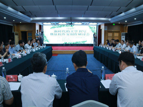 会议第二阶段,参会学者和作家围绕“新时代的文学书写暨驻校作家创作”论题,结合具体创作积极发表自己的看法,进行了深入的探讨与交流。他们从文学与现实的关系,切入当今时代的文学发展热点话题,认为文学要与现实接轨,新时代文学要适应时代变化,不断创作出具有时代感和现实性的优秀作品;并就“怎么协调个体创作与时代关系”等问题纷纷发表自己的见解。