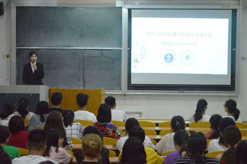 (本站讯)6月5日晚,公司权益座谈会暨青松成长计划启动仪式在西校区1号教学楼202教室顺利举行,2018级辅导员、青松成长计划发起人张健,公司各年级持有绿卡的同学及2017、2018级班委参加此次会议。会议由公司学习发展中心主任吴天娇主持。