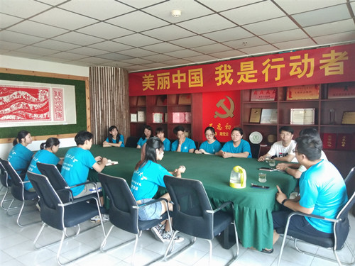 实践团成员在会议室向郑炳心老师进行工作进程的汇报,李宝宝老师简单介绍绿丝带发展中心的现状和社会实践开始五天以来实践团成员的表现,认为成员需要主动争取锻炼机会,提出自己的观点,不要被动接受任务,积极地展示自己,更有利于增强能力和建设团队。与成员接触更多的杨忠凯老师提出,在实践过程中要及时反馈工作进展,以便更高效地进行工作。
